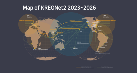 KREONET is a high-performance backbone network designed to support the research and education community in Korea. By connecting 18 regional centers across the country, it offers transmission speeds ranging from 200 Gbps to 1.2 Tbps. By linking with domestic and international backbone networks, Internet Exchange nodes (IX), and National Data Exchange nodes (NDex), KREONET provides research network services and internet services to over 200 member institutions.