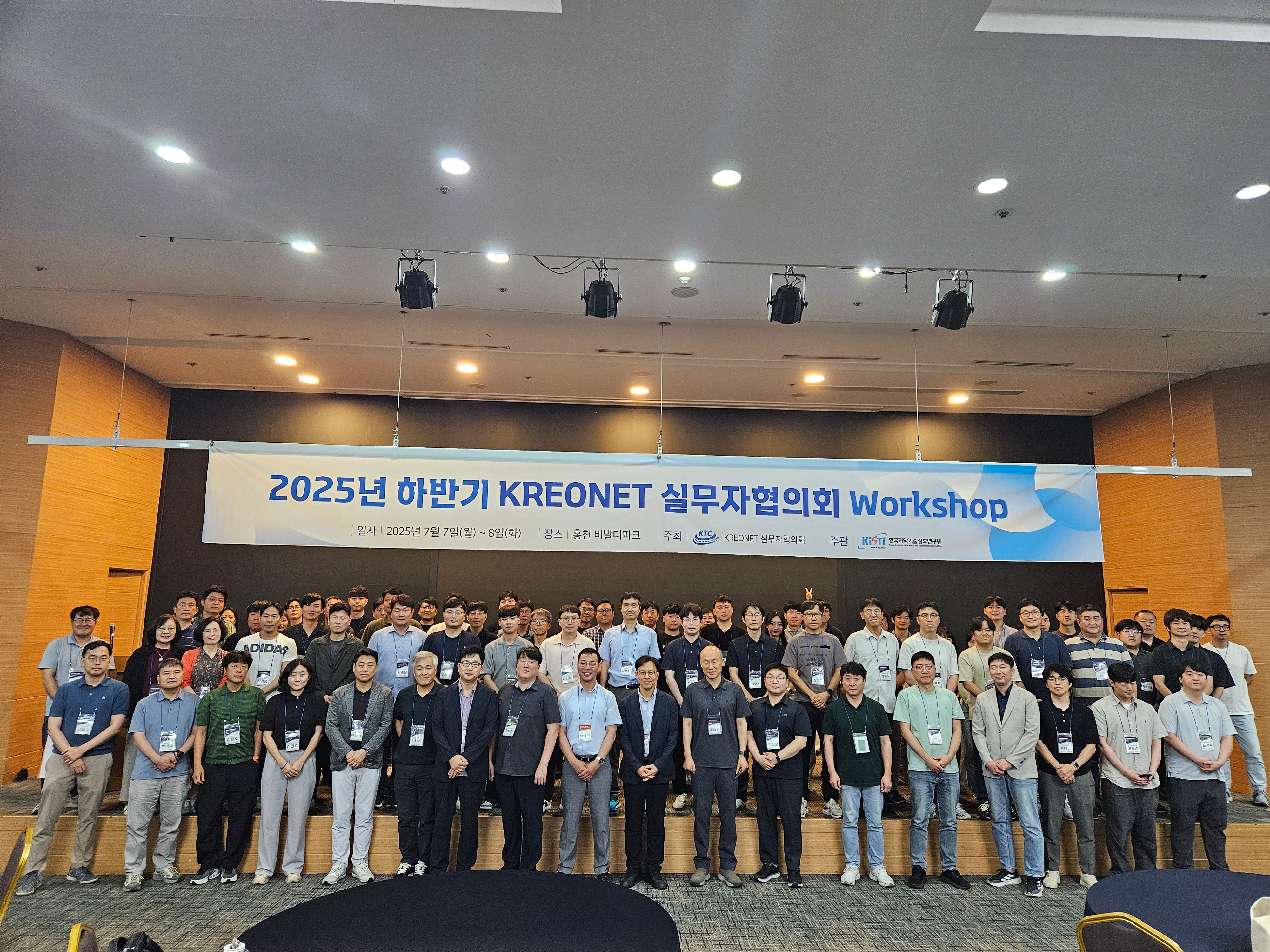 KREONET에서는 국가과학기술연구망 실무자가 참여하는 ‘2025년 하반기 KREONET 실무자협의회 Workshop’ 개최를 통해 「최신 네트워킹 및 미래 연구망 기술동향, 사용자 네트워크 활용 사례」에 관하여 다양한 정보를 제공하고 토론의 장 마련을 위해 '2025년 하반기 KREONET 실무자협의회 Workshop'을 개최하였습니다. KREONET 회원기관 실무자, 실무책임자, 실무자협의회 위원, 가입기관 등 124명이 참석한 이번 행사는 2025년 7월 7일(월) ~ 8일(화) 일정으로 홍천 비발디파크에서 개최 되었습니다. 세부내용으로는 「최신 네트워킹 및 미래 연구망 기술동향, 정보보호 기술 동향 등 사용자 네트워크 활용 사례」 관련 주제 발표 및 토론 등 총 9건의 프로그램으로 구성되어 있으며 다양한 최신 기술세션 및 KREONET 실무자협의회(KTC) 워킹그룹 활동을 주로 다뤘습니다. 앞으로도 KREONET 이용자들과 교류하는 시간을 지속적으로 갖을 것이며, 추후 있을 KREONET Workshop 2025도 많은 참여 부탁드립니다.